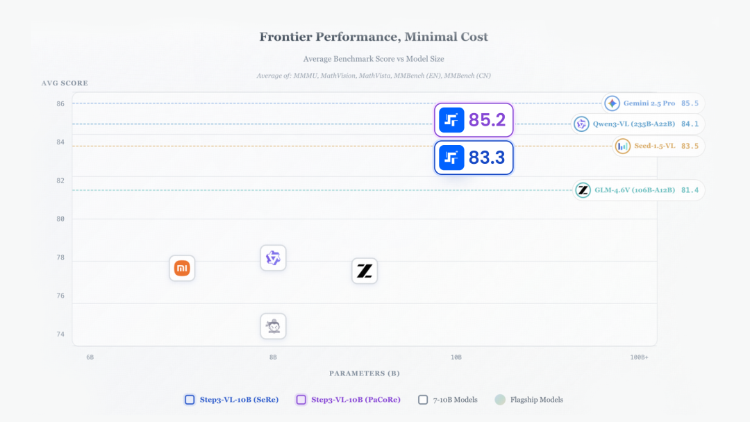 得益于“三位一体”架构,Step3-VL-10B 证明智能水平并不完全取决于参数规模。