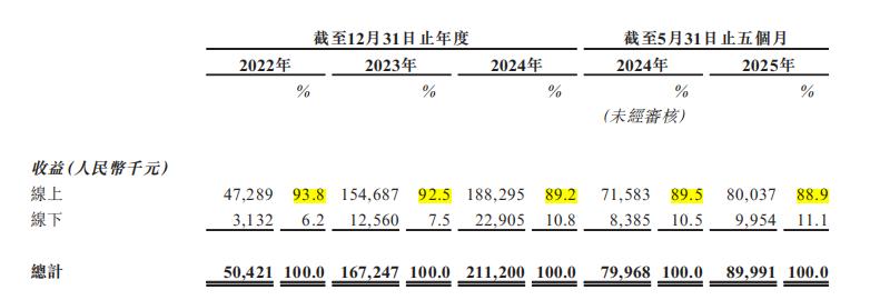 其中,问止中医的主要营收来自中医医疗服务,该业务包括预诊准备、人工智能辅助临床问诊、中医处方、开药及煎药服务。2022年至2024年该板块业务营收占比连续3年超过80%,2025年前五个月这一占比增加到89.6%,接近90%。