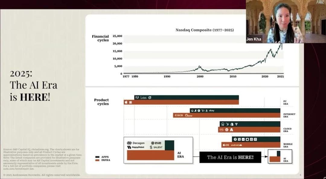 最早是PC时代,接着是互联网时代,再后来是移动时代。AI时代已然来临。目前软件领域的绝大多数新增收入,实际上都来自AI,无论是应用层面还是基础设施层面。