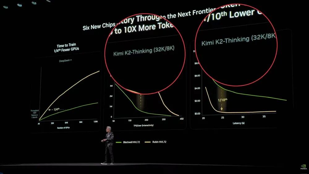 在今年英伟达创始人兼CEO黄仁勋的CES演讲中,Kimi K2 Thinking取代了此前英伟达发布会上常见的DeepSeek-R1,被用于演示英伟达Rubin NVL72系统的性能。