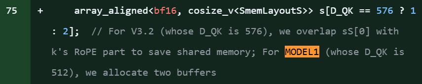 在推理层代码中提及新模型ID,往往意味着该新模型(代号为Model1)将继续复用或改进现有的MLA架构。