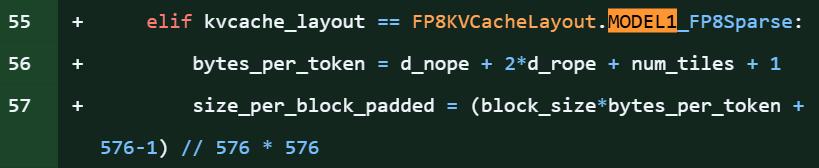 在DeepSeek的开源项目FlashMLA库代码片段明确引用了「MODEL1」,并且伴随针对KV缓存的新优化,和576B步幅的稀疏FP8解码支持。