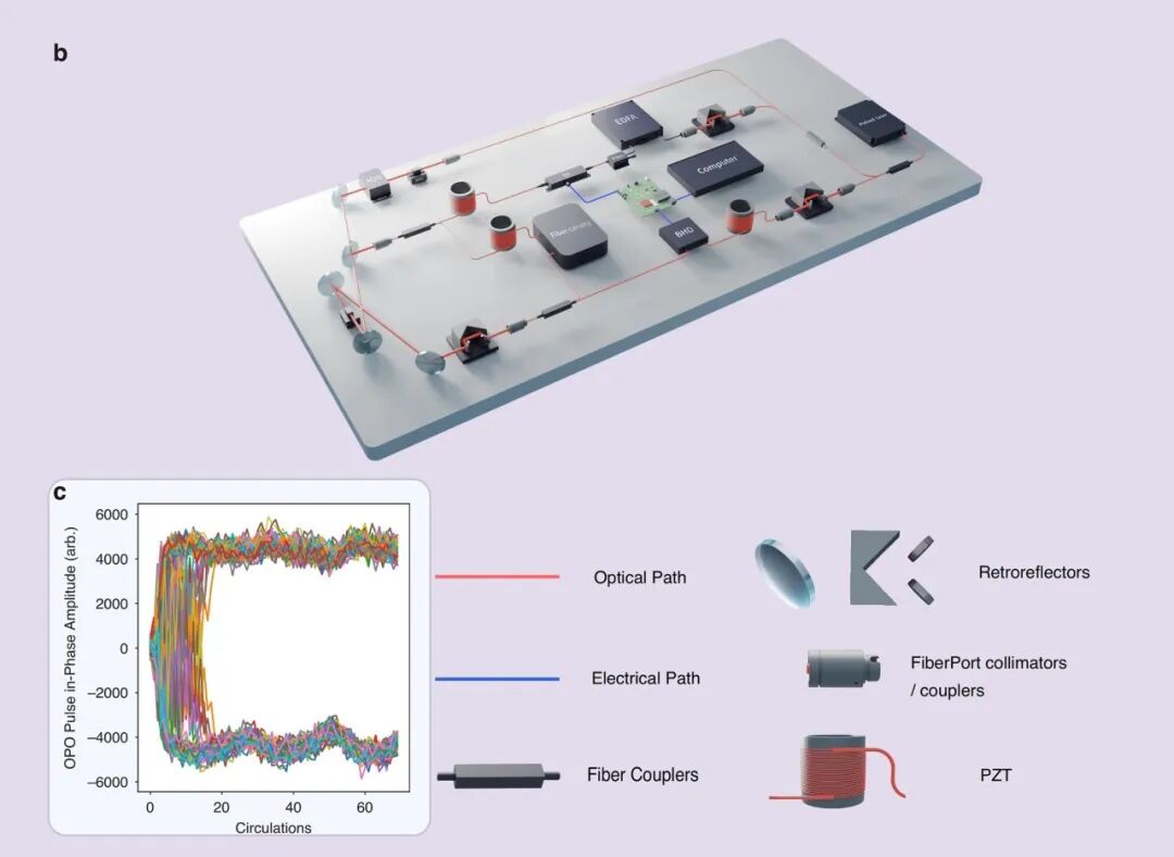 相干光量子计算机(Coherent Ising Machines, CIM)是一种基于量子光学技术的专用量子计算机,旨在高效处理组合优化等难题,由于这类问题在经典计算机上通常难以求得最优解,因此该技术路线为探索最优解提供了全新可能。这项研究聚焦于相干光量子计算机在求解NP-Complete问题方面的实验进展与实际应用潜力,该研究团队通过多方面优化策略显著提升了相干光量子计算机的计算精度与运行稳定性。