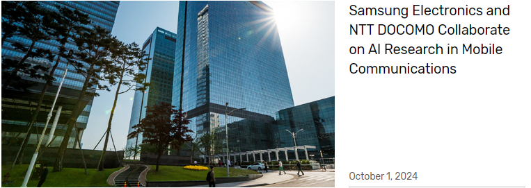 IT之家 10 月 1 日消息,三星电子今日发布了一份新闻稿,宣布已与 NTT DOCOMO(IT之家注:日本最大的移动运营商)达成合作,共同研究人工智能在下一代移动通信技术中的应用。