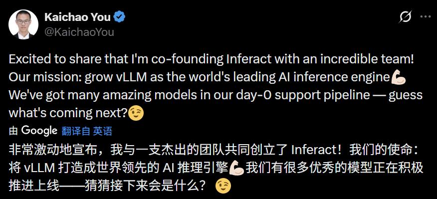 值得关注的是,vLLM 项目的核心贡献者清华博士游凯超成为了这家公司的联合创始人。
