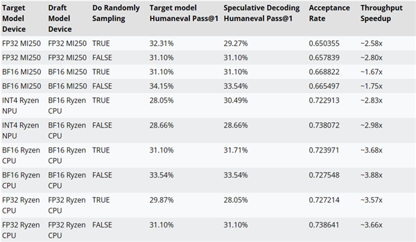 比如在MI250加速器上,性能可提升最多约2.8倍,锐龙AI CPU上可提升最多约3.88倍,锐龙AI NPU上可提升最多约2.98倍。