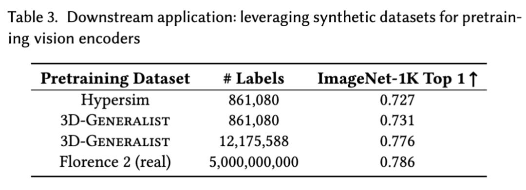 研究团队还使用Florence-2框架,在由3D-Generalist生成的3D环境渲染得到的合成数据上训练一个视觉基础模型。