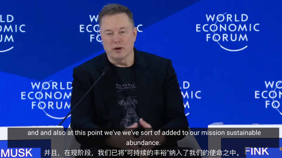 1月23日,马斯克和贝莱德CEO拉里·芬克同台对话,也是作为世界首富的他首次亮相达沃斯论坛。
