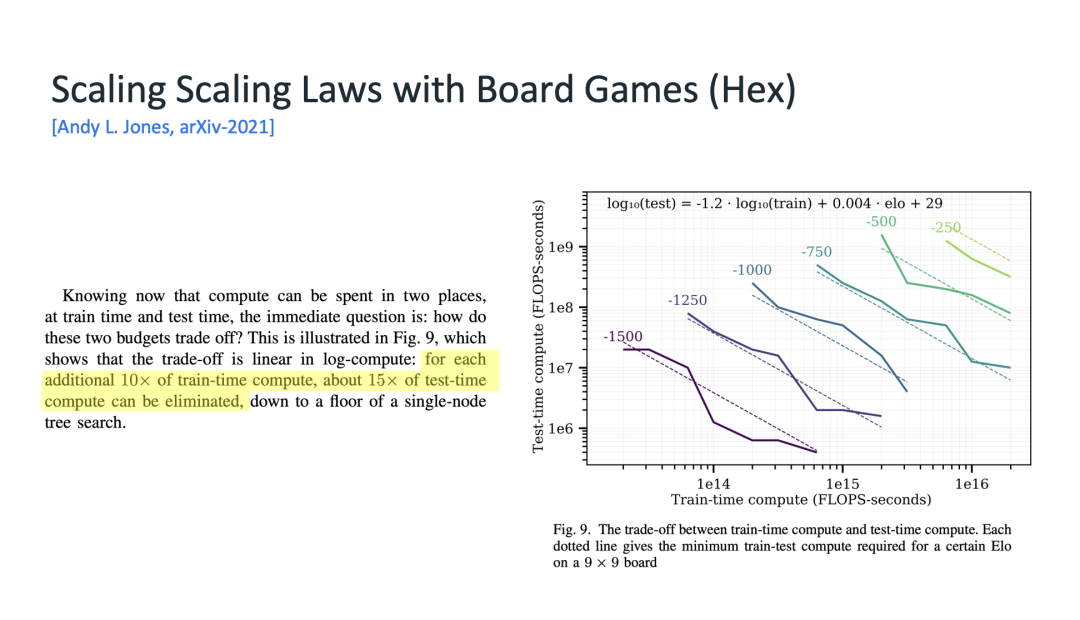 在论文《Scaling Scaling Laws with Board Games》中,andy不仅首次系统地量化train与test compute的tradeoff。
