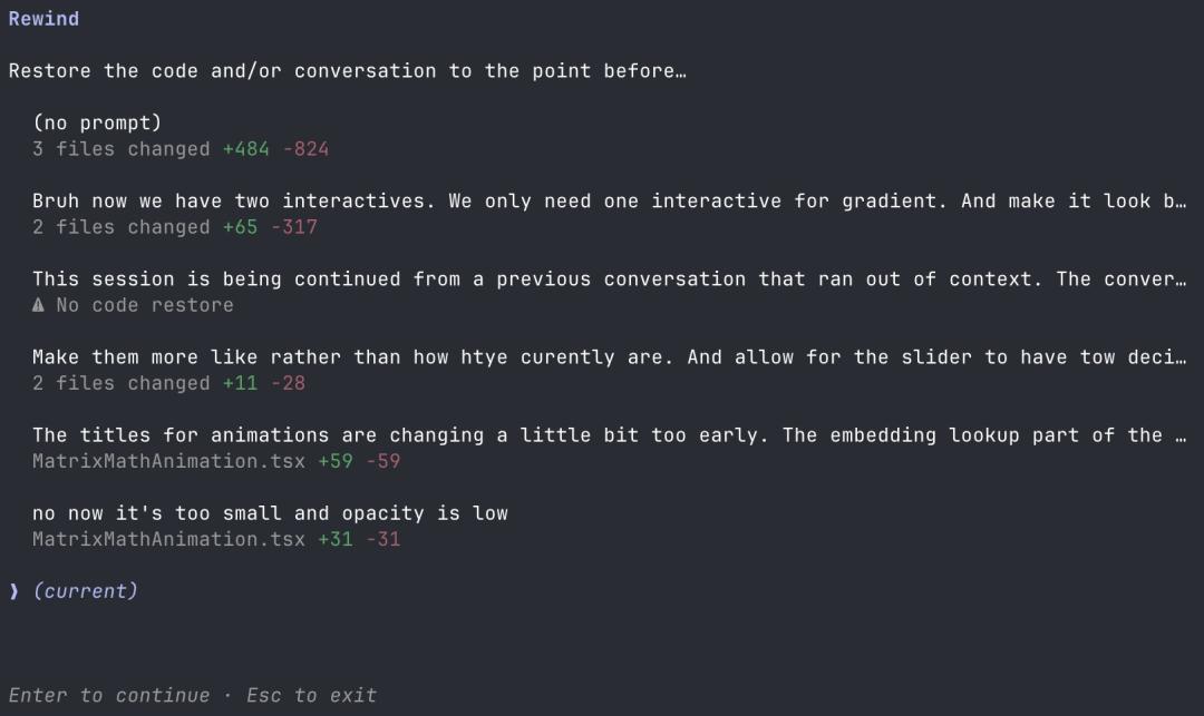 键盘快捷键:Esc+Esc是后悔药(回滚),Ctrl+R是时光机(搜索历史),能让你在聊天里直接跑bash命令。