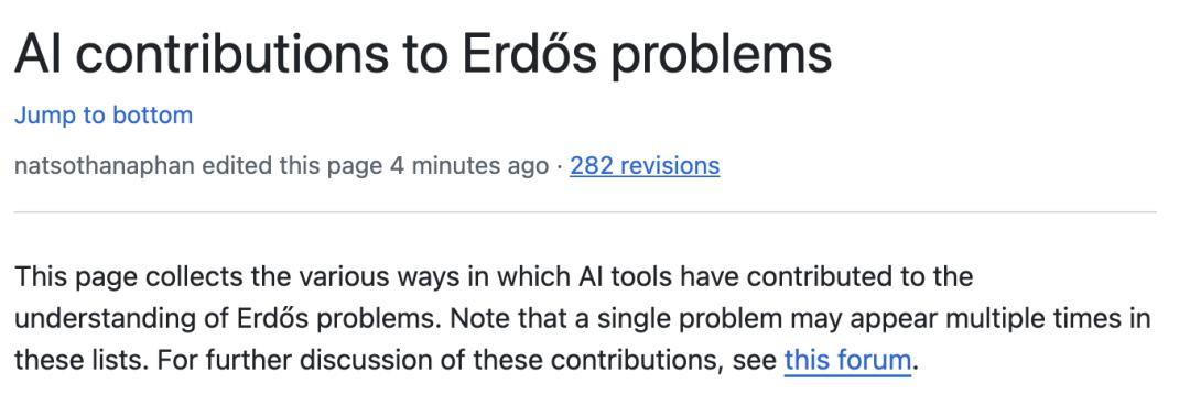 陶哲轩甚至开了个wiki页面,专门记录「AI对Erdős问题的贡献」。
