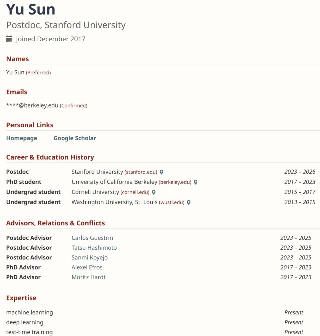 本文通讯作者 Yu Sun,是「Test-Time Training (TTT)」这一概念的坚定布道者和「总设计师」,目前是斯坦福大学博士后,同时也是英伟达的研究员。