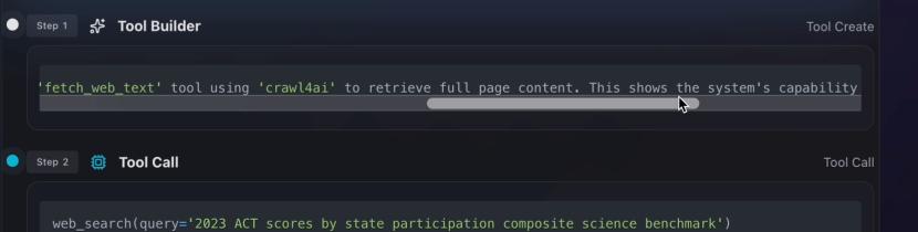对话结束后,系统会对整个过程进行复盘,更新自己的工具库,并将迭代过程蒸馏、沉淀为可复用的方法论。