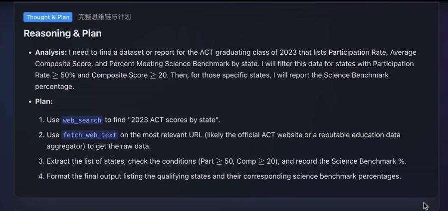 在收到用户需求后,它会分析任务、拆解目标,并与现有工具库对齐,看看有没有现成工具可用。
