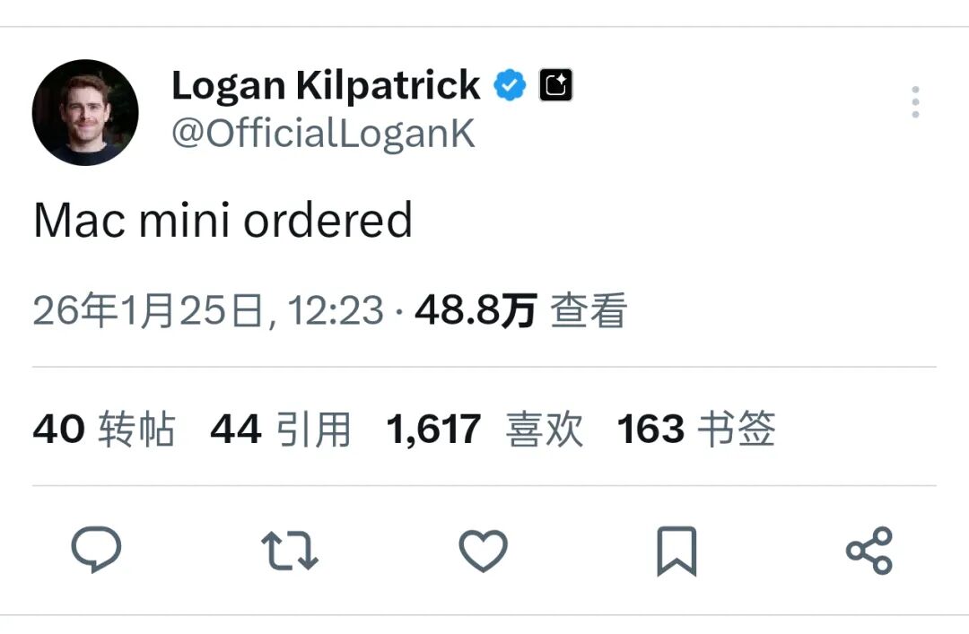 Clawdbot 确实能称得上现象级产品。无数友商大佬纷纷安利,甚至为了它专门购买 Mac mini,其中甚至包括 Google AI Studio 的产品负责人。这款 Clawdbot 从爆火开始,就与 Mac mini 这个硬件高度绑定,成为一套出圈组合。