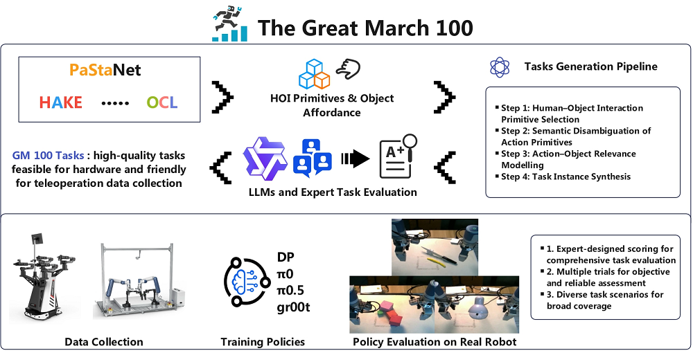 李永露告诉我们,团队不会止步于GM-100数据集的发布。GM取自“Great March”,寓意“长征”,团队将逐步把任务库扩展至300乃至1000项,并推进跨机器人平台评测,以增强评测的覆盖面。