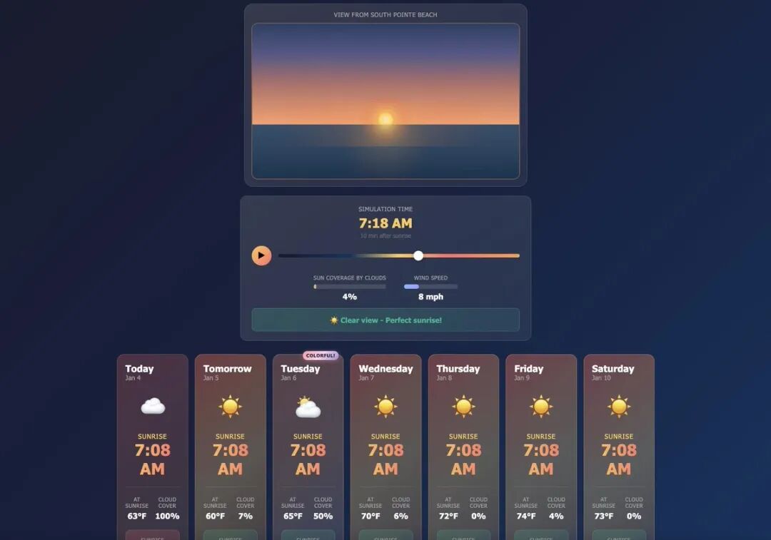 「Claude Code太TM疯狂了。我对编程一窍不通,完全是零基础。结果我刚用它10分钟,就做出了一个完整的Web应用——追踪迈阿密最佳日出观赏时间。」