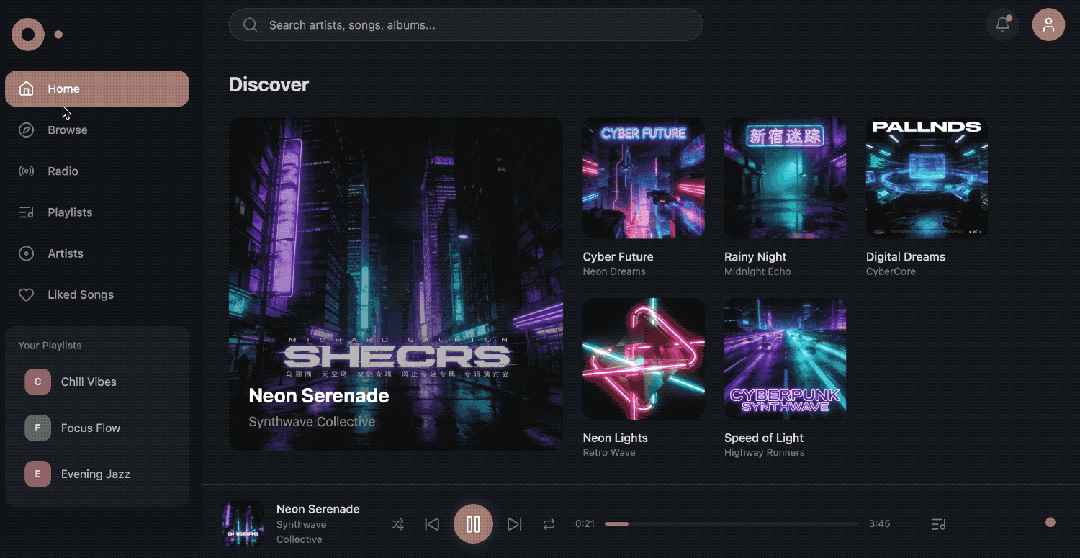 网页上展示的音乐封面是模型自己生成的,除此之外可以看出最下方的按钮布局没完全还原,但这个效果在我看来已经算是一张还原度超过90%的优秀答卷。