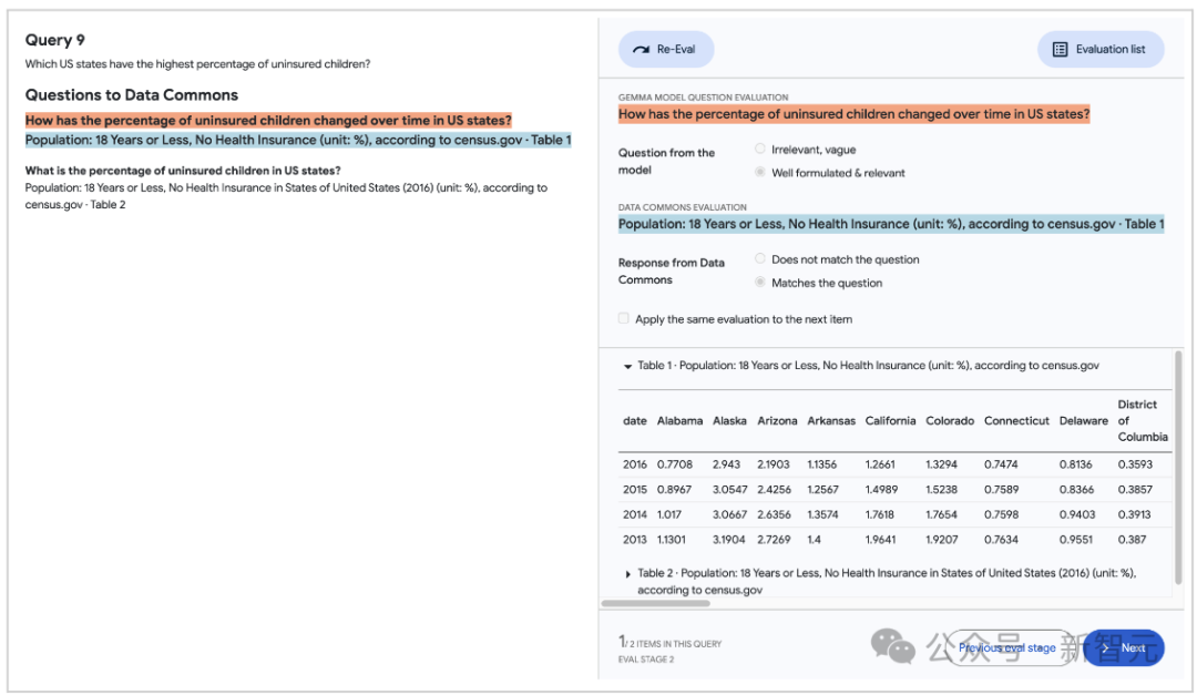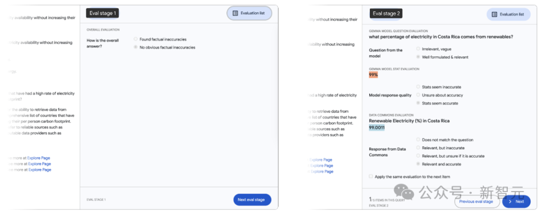 人工评估人员能够浏览所有查询,并检查每个查询响应中的所有 Data Commons 调用,首先快速检查是否存在任何明显的事实不准确之处,然后对响应中存在的每项统计数据进行评估。
