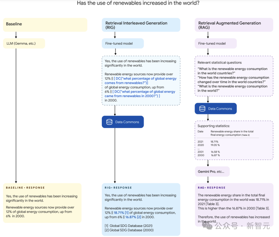 本文作者以谷歌开源的 Gemma 和 Gemma-2 模型为基础,分别利用检索交错生成(RIG)和 RAG 微调出两个新的版本。