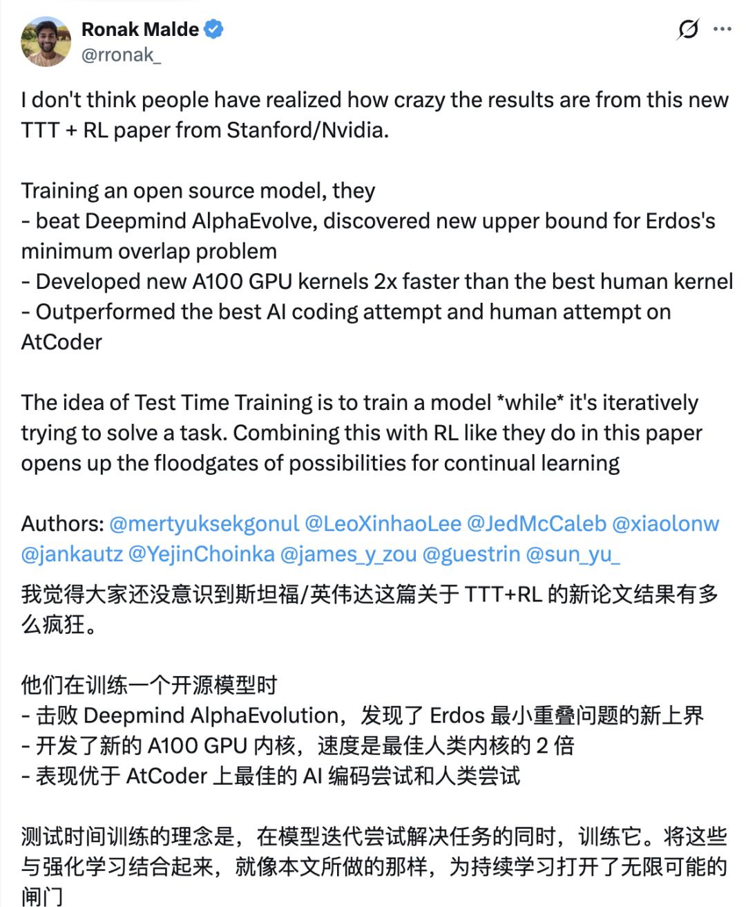 在业界看来,TTT-Discover 所提出的理念,或为持续学习打开了新的想象空间。