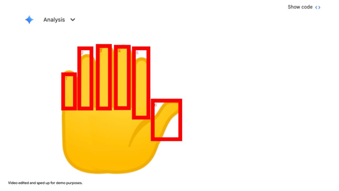 在下面的例子中,模型被要求数Gemini应用中一只手上的数字。