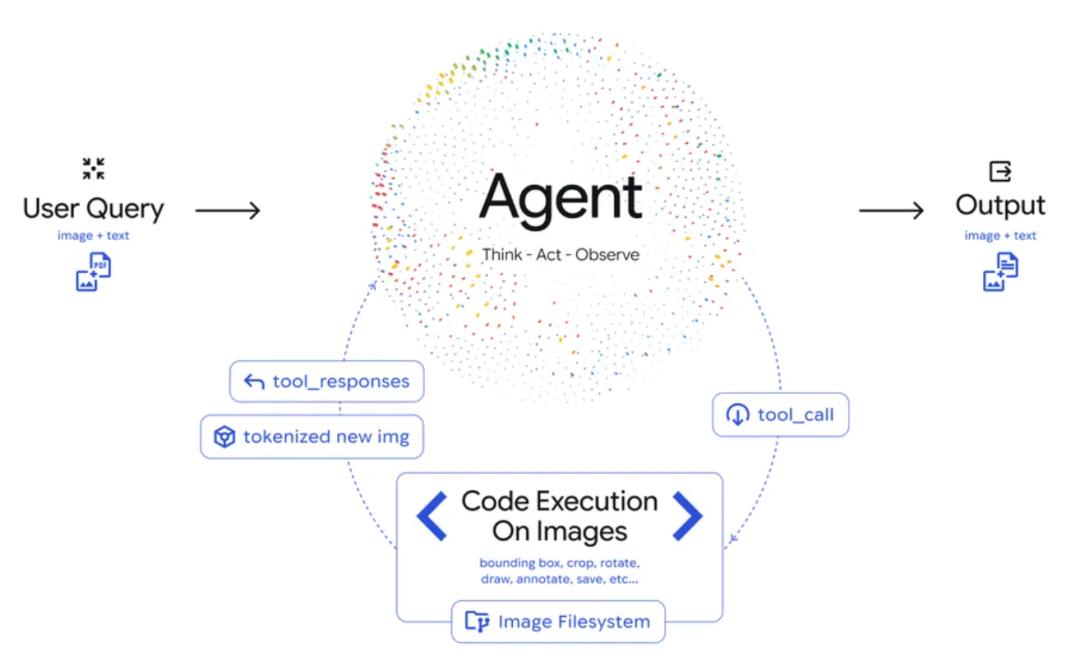 而Agentic Vision引入了一个「思考-行动-观察」(Think-Act-Observe)的闭环: