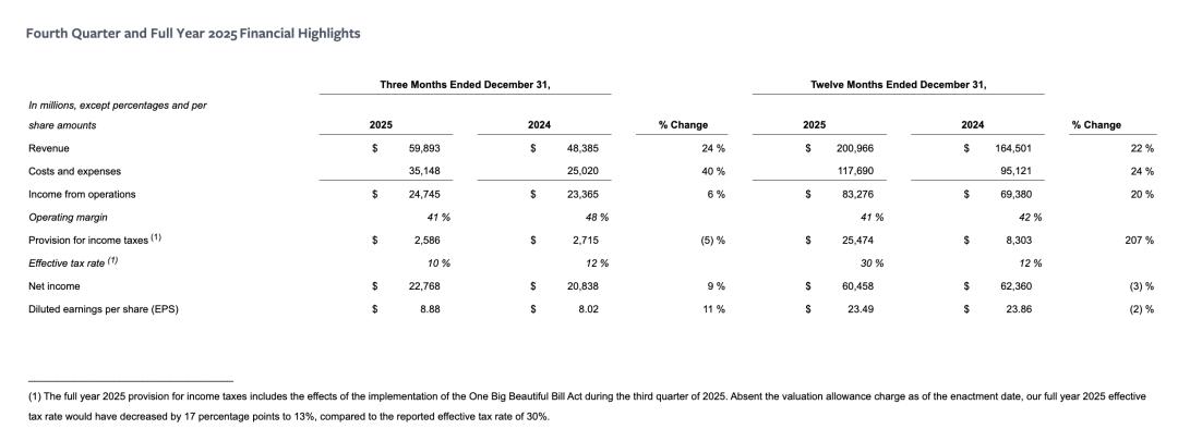 · 营收598.93亿美元,同比增幅达到24%,显著高于华尔街预期。