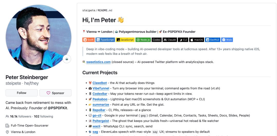 Peter Steinberger,Moltbot(原名Clawdbot)的创始人。