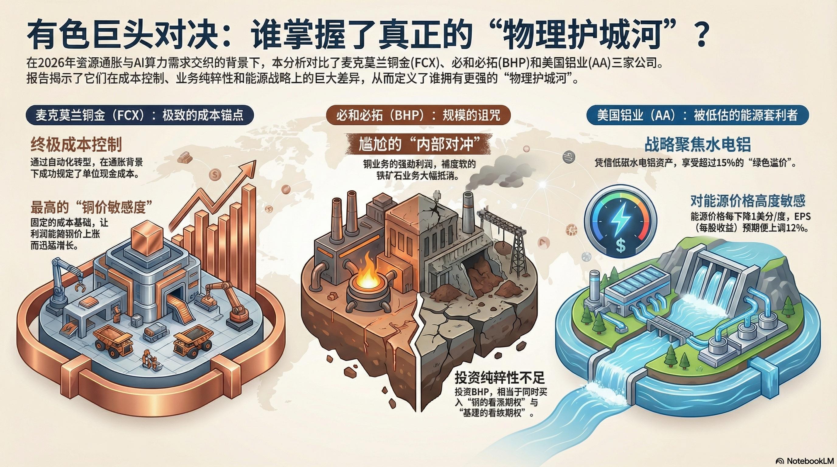 3)2026 年,投资有色金属的胜负手不再是博取波段价差,而是锁定稀缺资源。麦克莫兰(FCX)凭借极致成本锚点对标早期能源巨头,美国铝业(AA)则充分收割能源套利。在美元信用波动的背景下,重仓物理世界、拥抱有色金属,不仅是资产对冲的必选,更是持有 AI 变革的入场券。