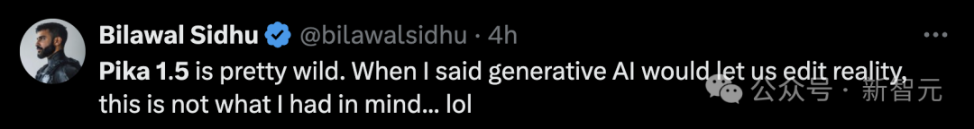 Twitter 创作者 Bilawal Sidhu 表示,Pika 1.5 相当疯狂。当我说 GenAI 会让我们编辑现实时,我并没有想到会是这样......