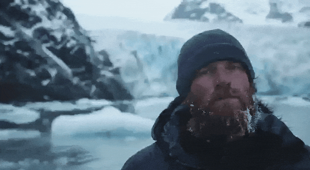 冰川上的男子无论是脸上的表情、纹路,还是胡须中的冰块,都完全还原了现实中的画质。