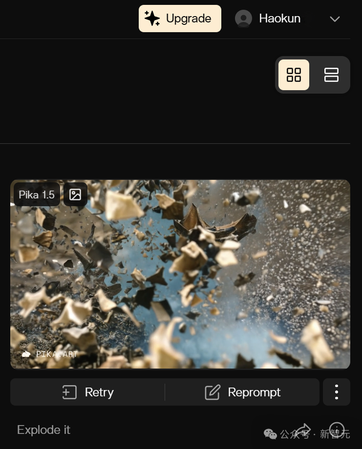 或者,都不用上传图片。直接选个特效,Pika 就会随机一张图片,并生成相应的效果。