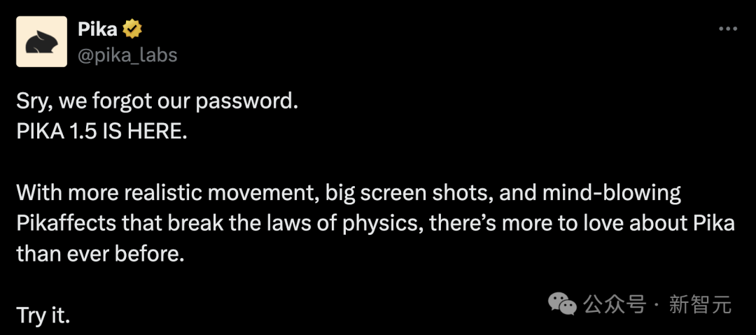 重磅更新的 Pika 1.5,简直要把社交媒体炸翻了!网友们惊叹:现在的 AI 视频,已经进化到这种程度了?不仅效果惊艳有趣,这次发布的用户使用手册也让 AI 视频更加大众化,连小白都可以轻松上手了。