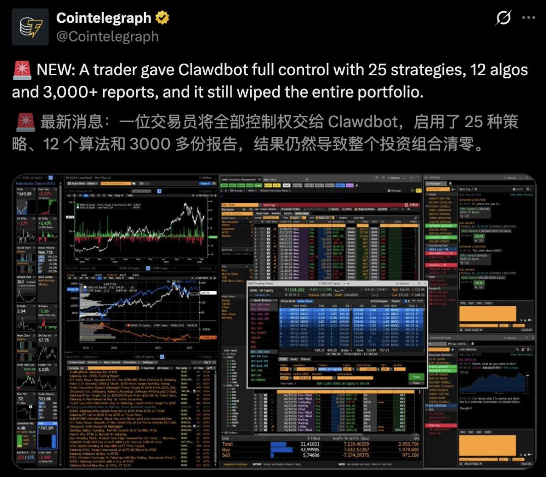 等真正上手实操后,就知道有多惨了。这不,有人将交易权交由Moltbot之后,直接血本无归。