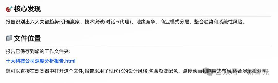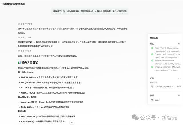 再比如,上方下达命令——对全球十大AI公司前景做一个深度调研报告。
