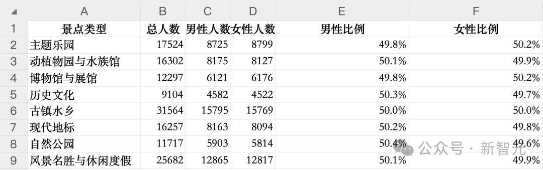 要求是根据不同的景点类型汇总人数,并计算出男女游客所占的比例,最后再统计成一个Excel表格。