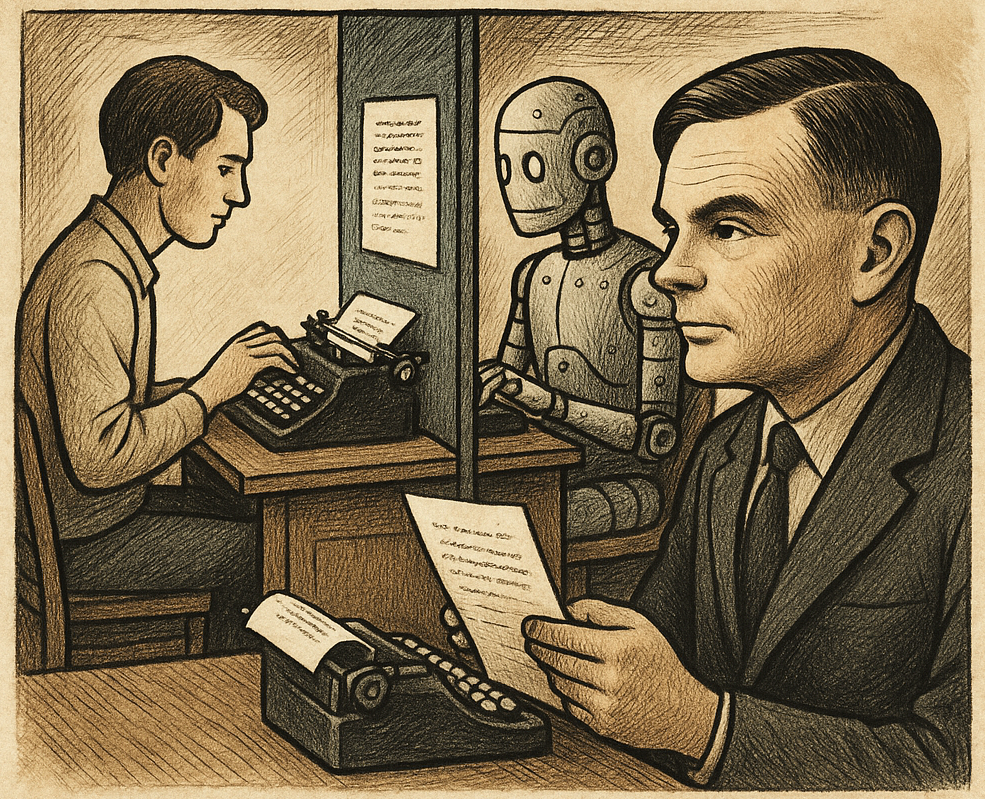 图灵测试的操作很简单:一位询问者将自己的问题写下来,发给处于另外一个房间中的一个人和一台机器,然后根据他们给出的答案确定哪个是真人。