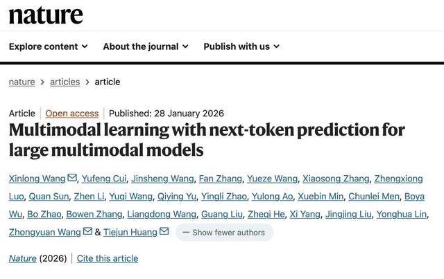 智东西2月1日报道,北京时间1月29日,北京智源人工智能研究院推出的多模态大模型“悟界·Emu”登上Nature正刊,成为继DeepSeek之后第二个达成此成就的中国大模型团队研究成果,也是中国首篇围绕多模态大模型路线的Nature论文。