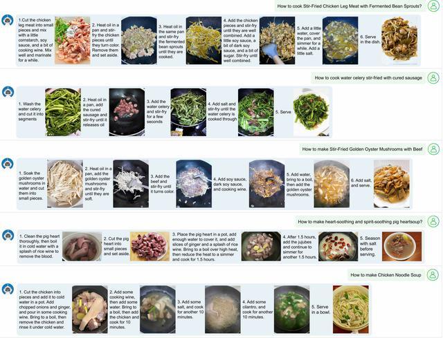 Emu3还可拓展至视觉语言交错生成,例如图文并茂的菜谱生成。