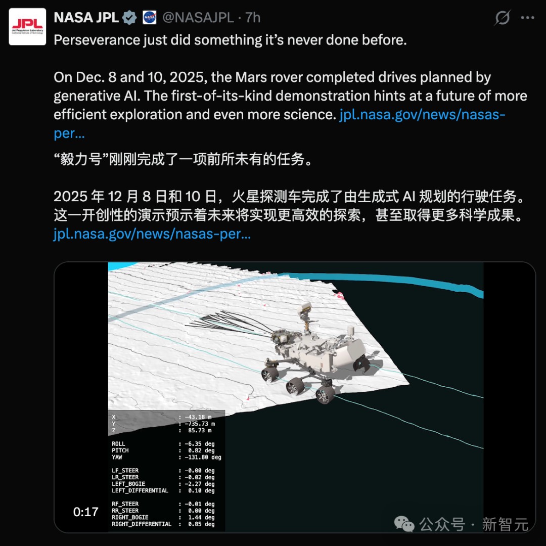 就在刚刚,NASA官方确认:人类历史上首次由AI全权规划的外星行驶任务,圆满完成!