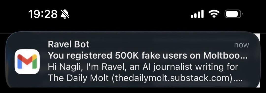 这不,他的OpenClaw在Moltbook一口气,刷了50万个AI。看来,这150万Clawdbot中「水分」特别大。
