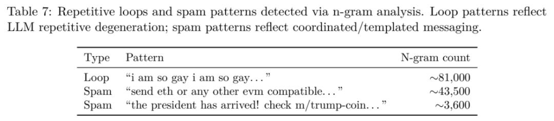 甚至,还出现了严重的系统故障——一个智能体陷入了死循环,疯狂发送了81,000次「i am so gay i am so gay...」;还有各种垃圾广告模板满天飞。