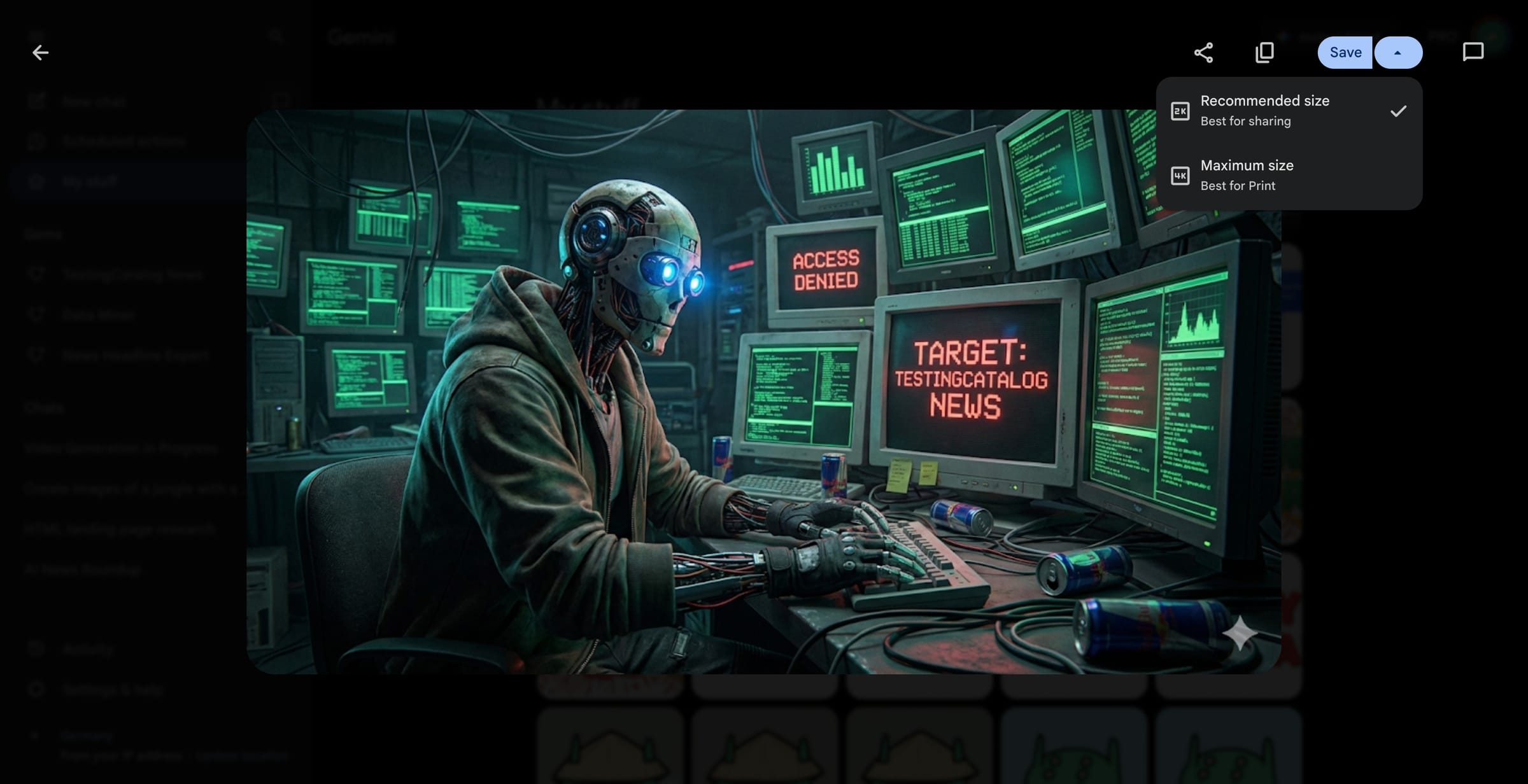 此外,Gemini 的图像生成功能也迎来了升级,目前支持下载 2K、4K 等更高分辨率的图片,其中最高质量的选项被标注为“最适合打印”(best for print)。