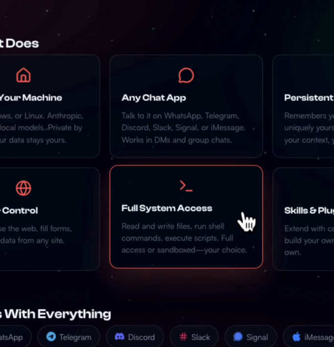 Clawdbot 的不同在于,它直接运行在你的电脑或服务器上,拥有系统级权限。