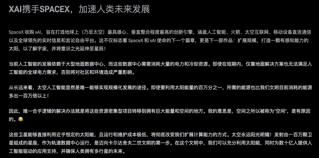 SpaceX 和 xAI 的合并,完全是一场事先张扬的事件,从马斯克扬言要向太空发射数据中心的推文开始。