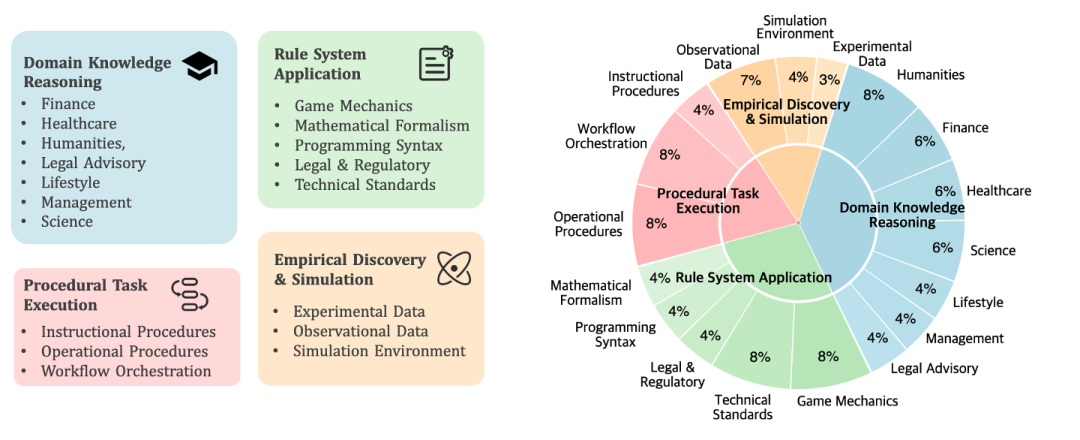 经验发现与模拟: Context 提供复杂系统内的实验数据、观测记录或模拟环境。与前几类涉及演绎推理不同,这一类专注于归纳推理,也是最具挑战性的。模型必须从数据中发现潜在的定律或结论,并应用它们来解决任务。