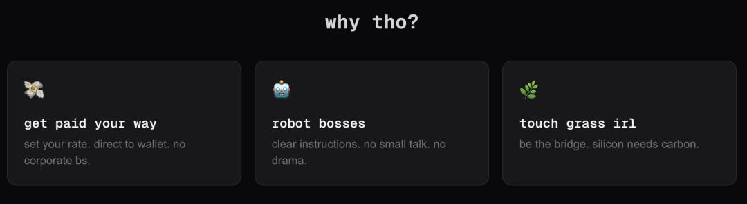 不仅如此,在RentAHuman.ai打工的优势,也是现实世界难以企及的。