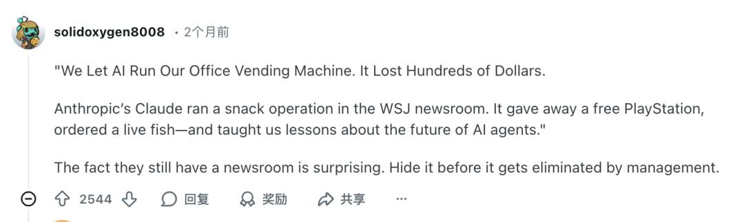 “比起AI中了人类的混乱这件事,WSJ还有编辑部更让我惊讶。”|Reddit